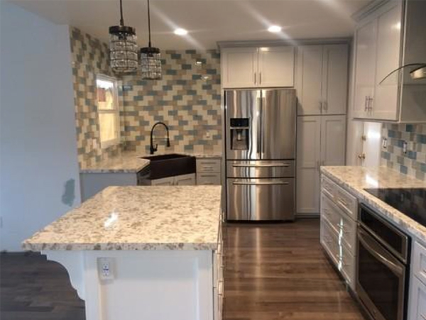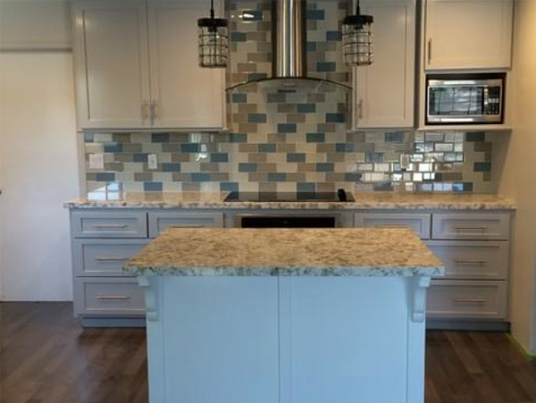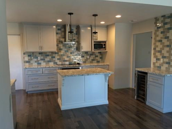 “As far as the remodel, it was a complete remodel of our kitchen and living room areas. The kitchen was moved to a different location of the house with custom cabinets and backsplash. Walls were removed and ceilings were vaulted. We had a few windows installed and one of the best things added was a 12ft. sliding glass/bifold door to our backyard. All work done was top of the line. If any issues were found or noticed Jason was on top of it and fixed immediately.”